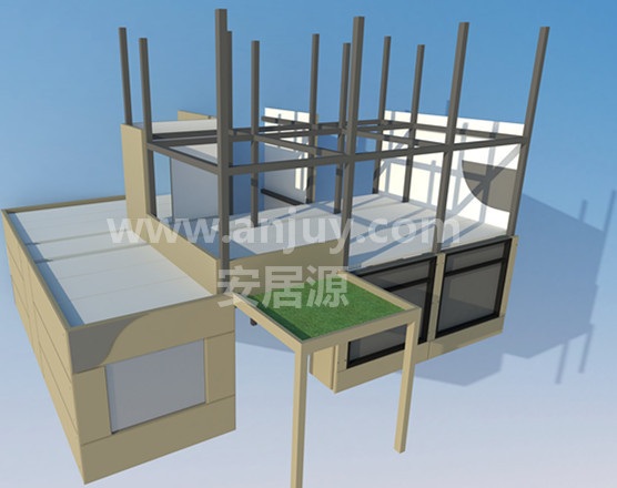 組裝房 - 特點1、材料環(huán)保,可回收利用;2、建設速度快,施工周期短;3、材料工廠化加工,現(xiàn)場裝配化施工,減少了施工對環(huán)境的影響,實現(xiàn)